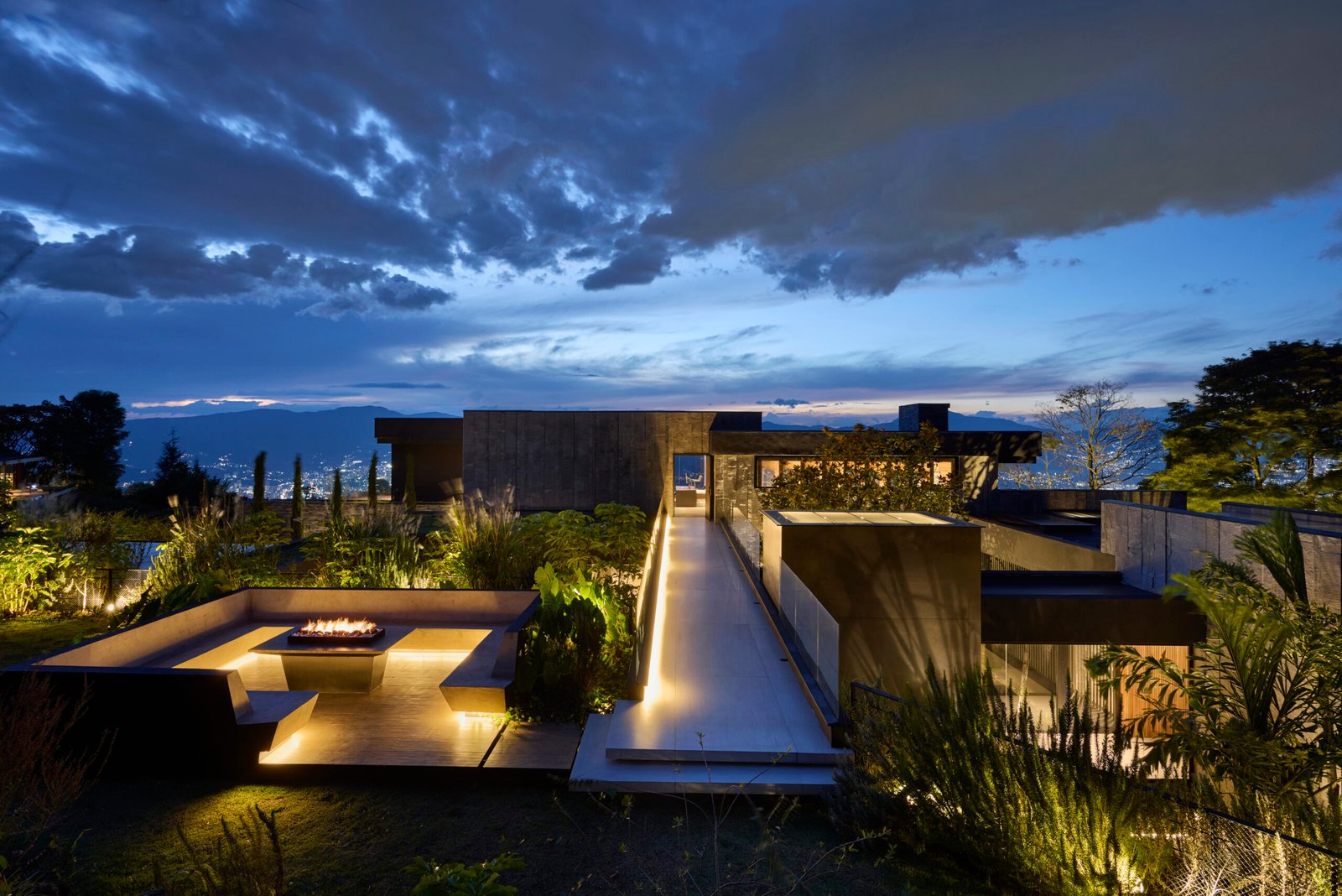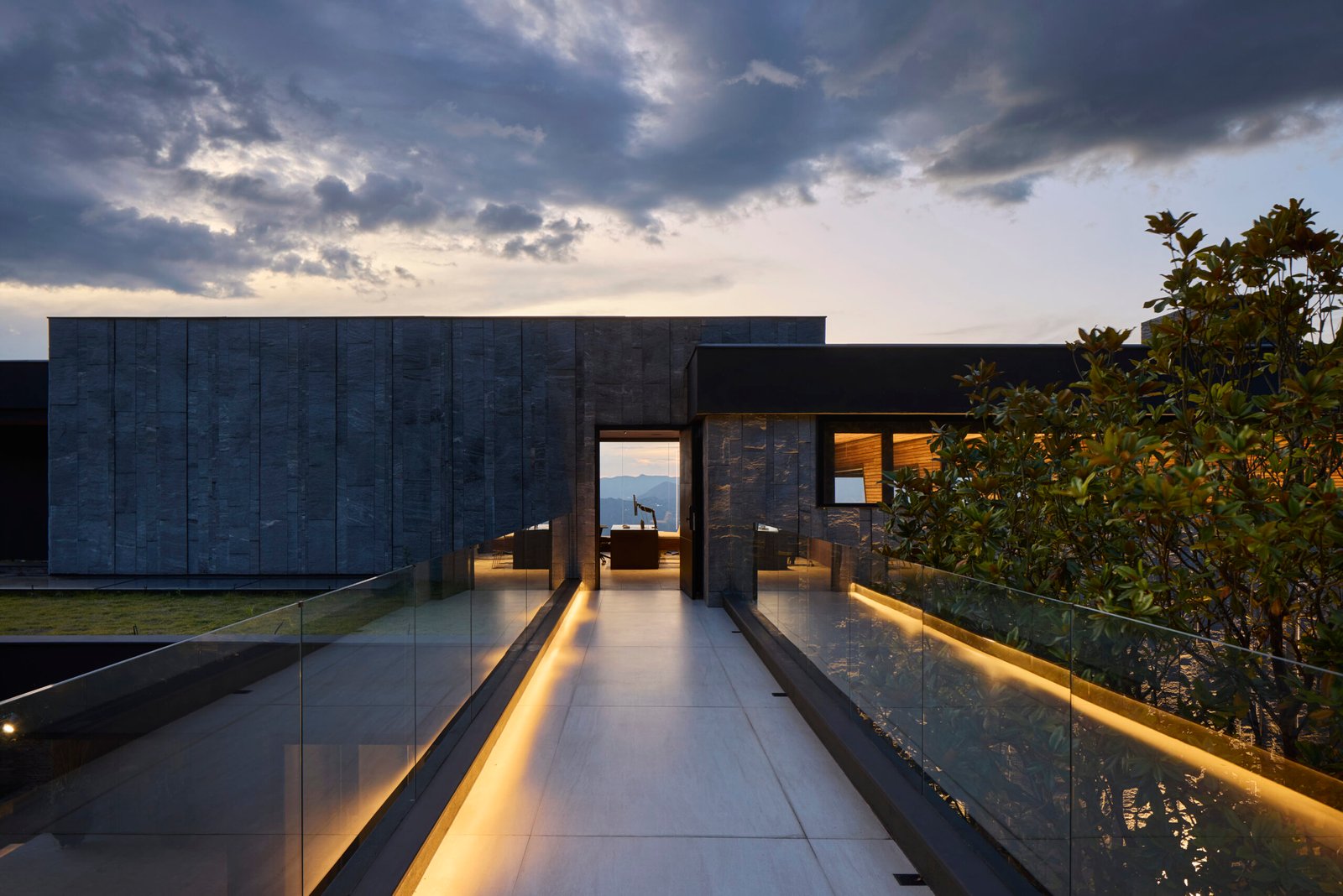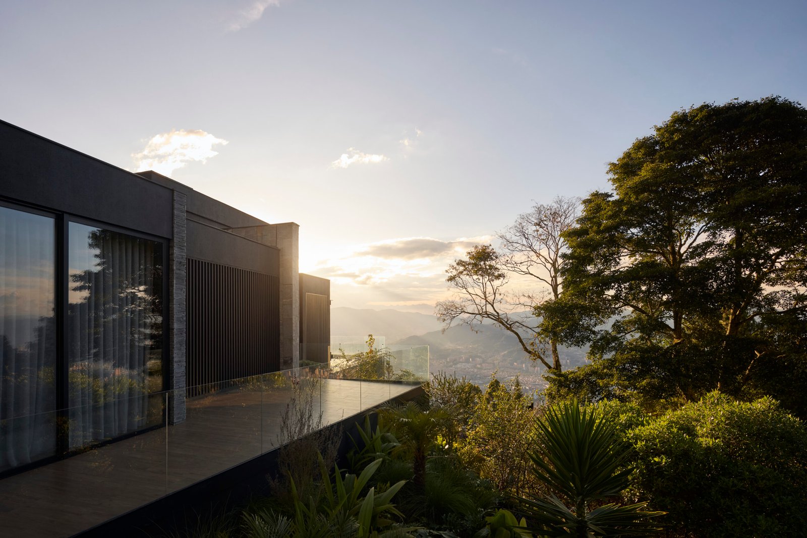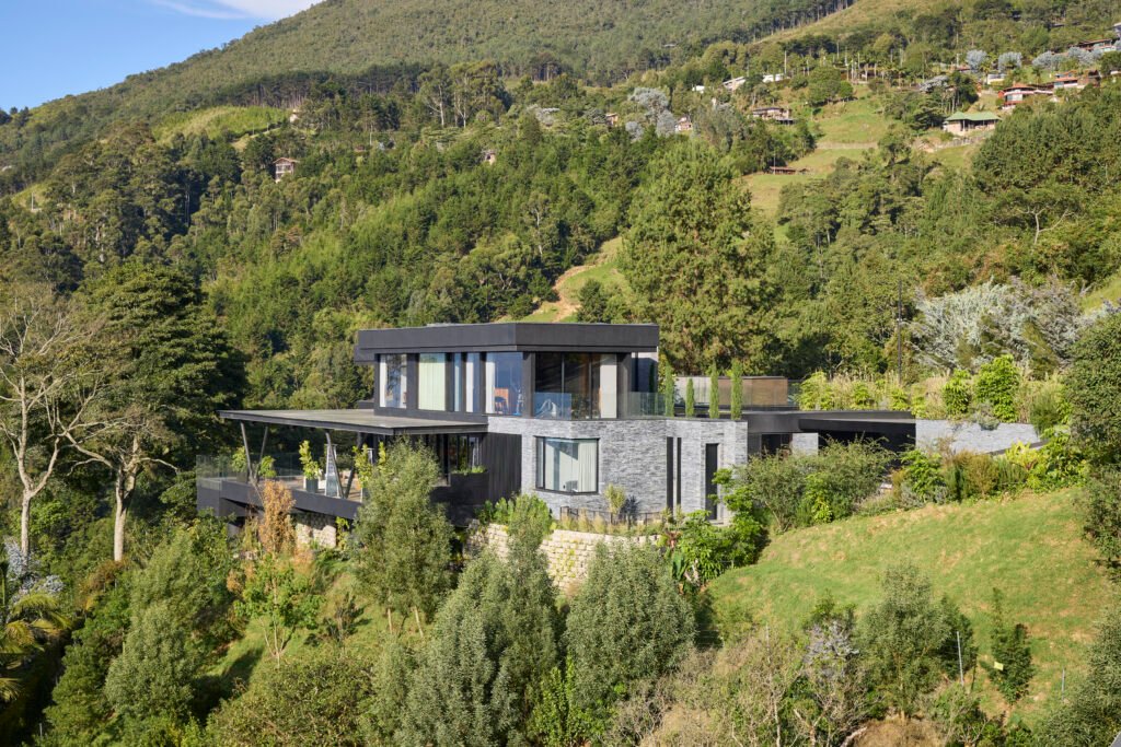 Ubicada en una ladera con vistas privilegiadas, se posa sobre el terreno como una secuencia de volúmenes cuidadosamente dispuestos para minimizar el impacto visual y físico. Su diseño permite que los límites entre el interior y el exterior se diluyan, ofreciendo una experiencia inmersiva con la naturaleza circundante. La ubicación estratégica del proyecto no solo maximiza las visuales, sino que también responde a factores climáticos, como la orientación para optimizar la iluminación natural y la ventilación cruzada, reduciendo la dependencia de sistemas artificiales de climatización.