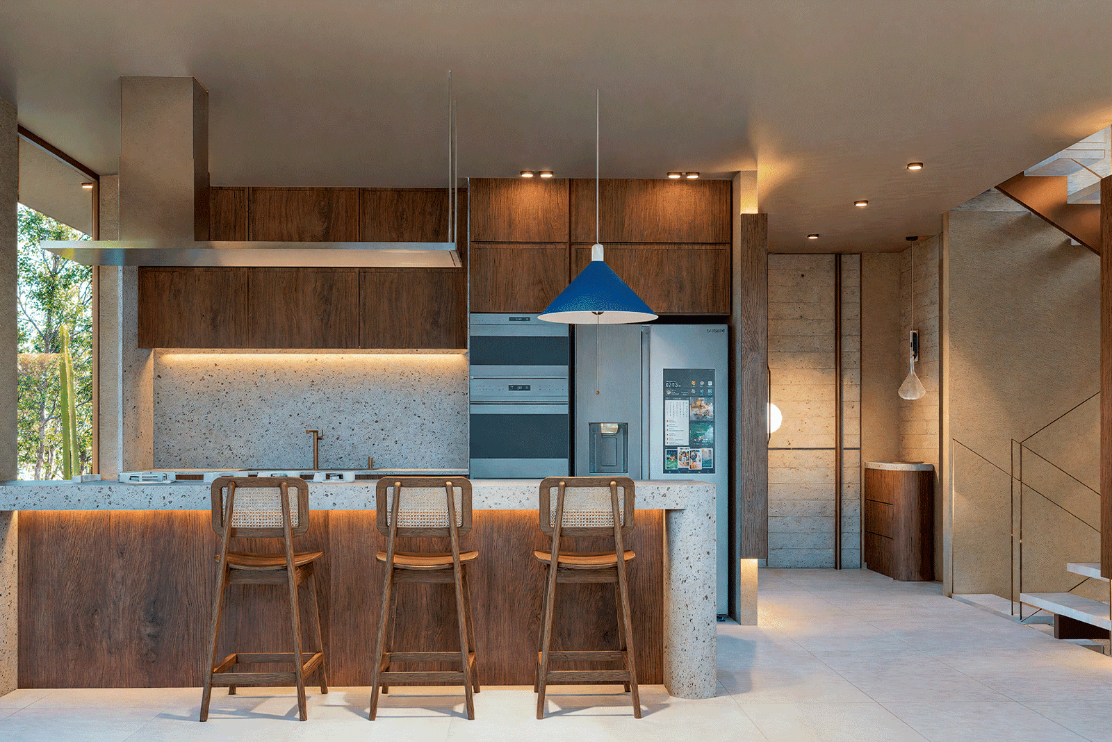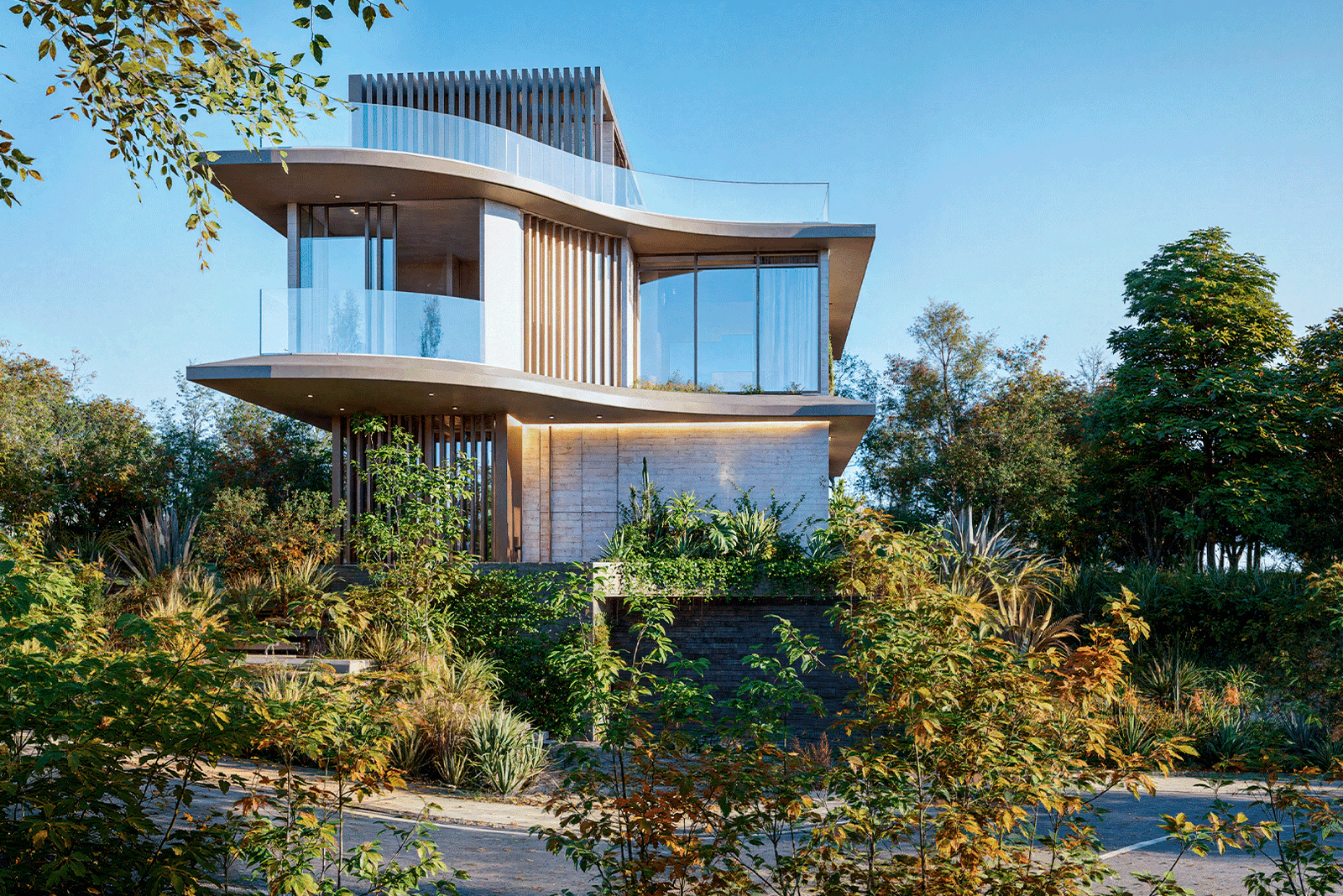 La casa se traza como una línea fluida entre lo natural y lo construido, una geometría ondulante que no compite con el entorno, sino que lo amplifica. Inspirada en la materialidad cálida y esencial, la propuesta encuentra belleza en lo atemporal y en la honestidad de los materiales endémicos: piedra natural, madera y texturas orgánicas que evocan el paisaje costero. Cada espacio es una invitación a la contemplación, al descanso y a la pausa. La arquitectura se vuelve porosa: permite que entren el aire, la luz dorada de la tarde y las sombras suaves filtradas por la vegetación nativa que envuelve la casa. Casa Euruses un refugio familiar, íntimo y abierto a la vez.