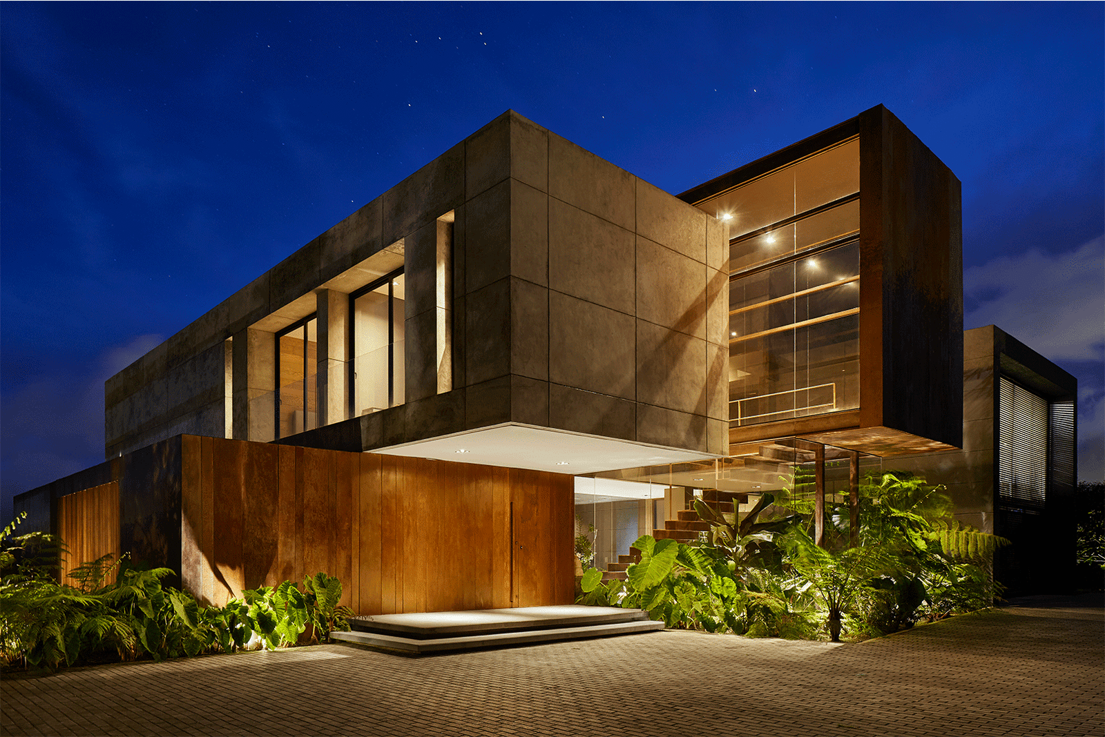Esta residencia contemporánea se plantea como un ejercicio de pureza volumétrica y transparencia, en donde el concreto expuesto, la madera cálida y el vidrio estructural conforman un lenguaje elegante y atemporal. El proyecto se desarrolla a partir de grandes planos horizontales que se proyectan hacia el exterior, generando una sensación de amplitud y continuidad visual que conecta la casa con su entorno natural.