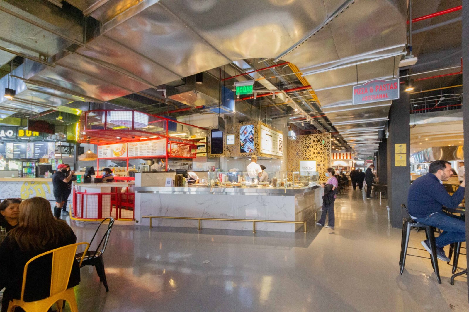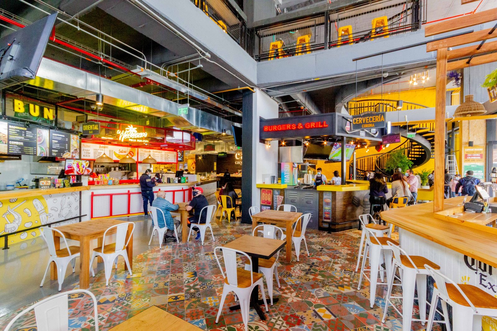 Diseñado con influencias industriales y un toque kitch, el interior del mercado es un crisol de creatividad y nostalgia, donde elementos modernos y clásicos convergen en una danza visual cautivadora. Las estructuras metálicas se entrecruzan con el encanto retro, creando un ambiente acogedor y vanguardista a la vez, ideal para despertar los sentidos y avivar la imaginación.