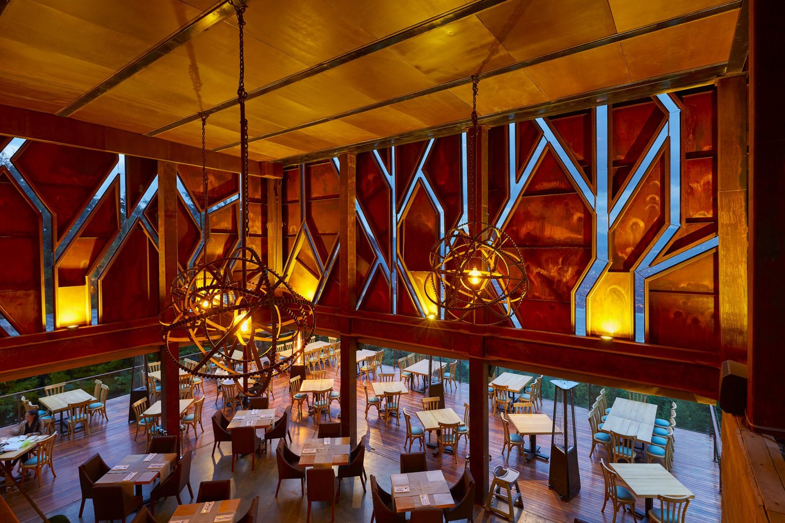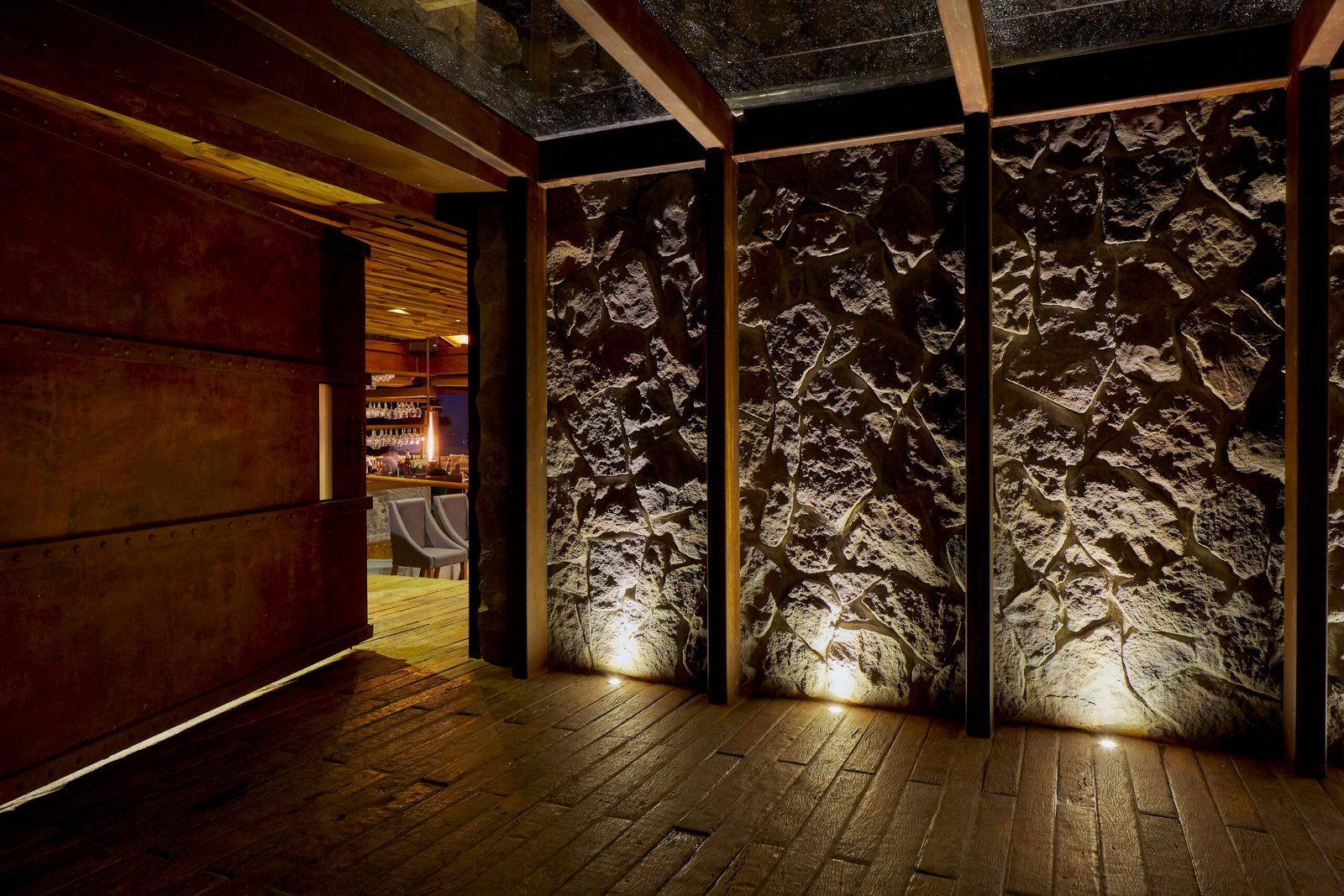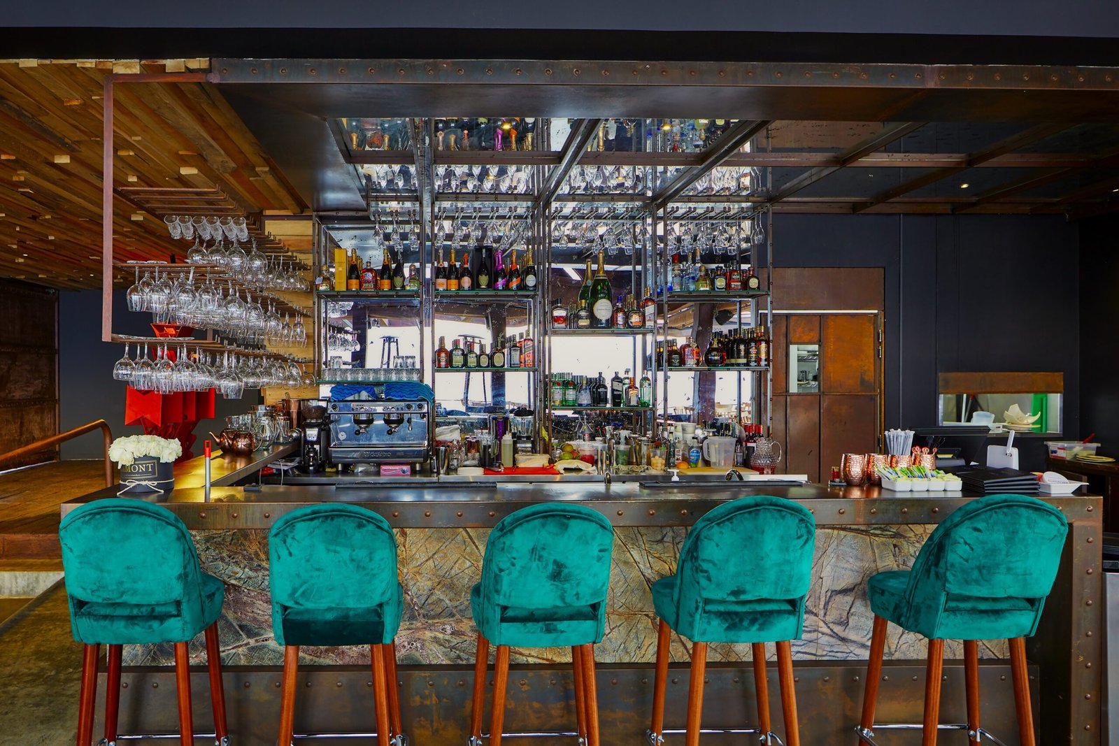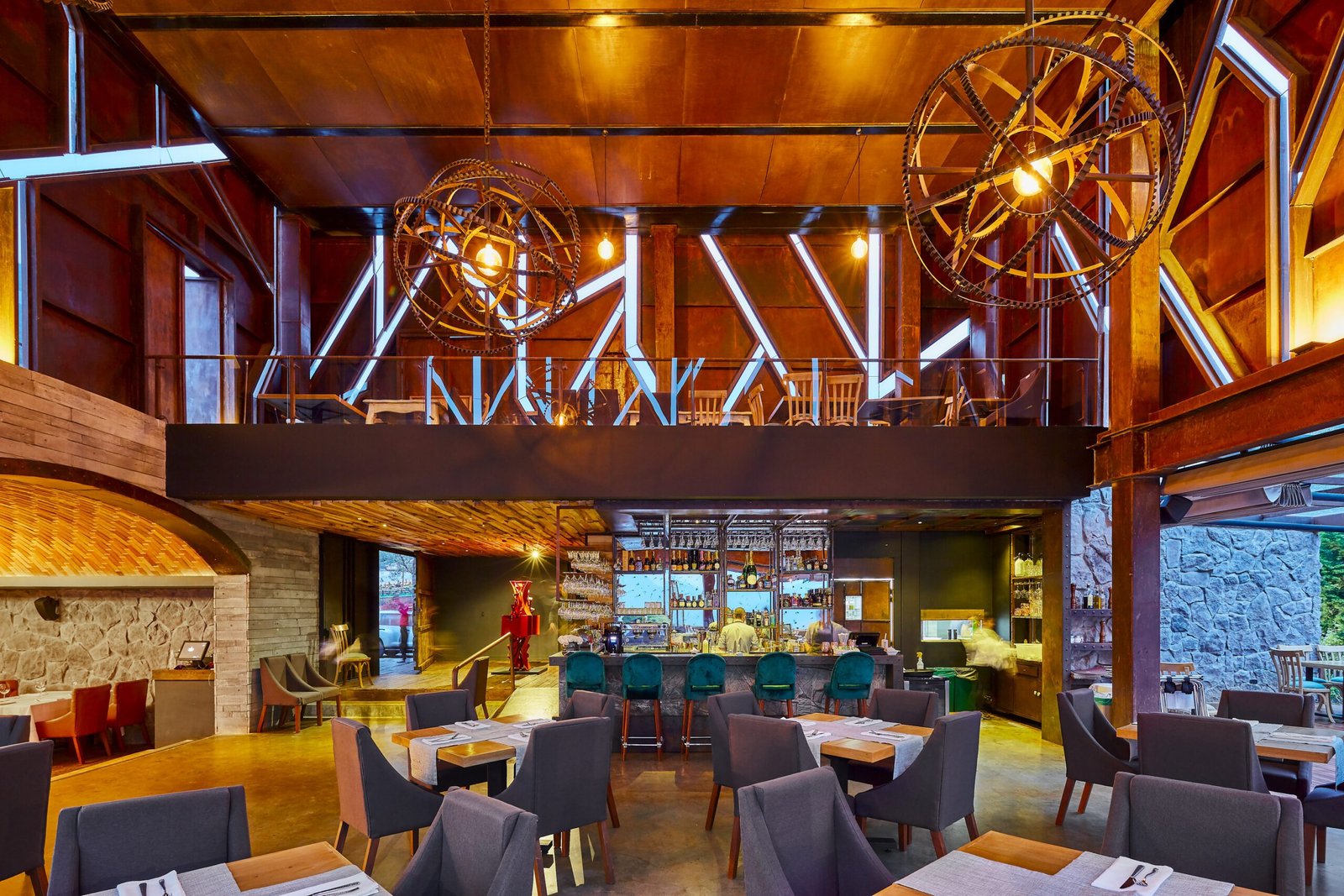 Desde dentro, accesos discretos pero marcados, reciben a sus visitantes con un espacio que abraza y da la bienvenida casi como un portal donde te desprendes del escenario urbano que dejas justo atrás, ahí, tu mirada se fuga por un pasillo que conecta todo un mundo gastronómico y te invita a descubrir… Es en este momento cuando al recorrer el espacio logras vivir la experiencia… Luego al salir del pasillo y adentrarte a la doble altura, tu perspectiva cambia y tu mundo se hace más grande, cantidades de vivencias te hacen recordar escenarios y personas que quisieras traer contigo, amigos, pareja, familia, compañeros y alcanzas a pensar en nombres y fechas… Esa es precisamente era nuestra intensión al diseñar este proyecto, no solo reflejar un lenguaje arquitectónico que respete el concepto inicial, sino además lograr vibrar con los sueños y aspiraciones de sus visitantes…